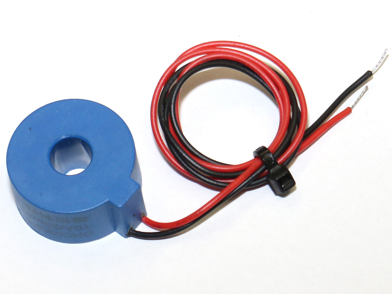 Der Miniatur-Stromwandler wird über das leitende Kabel geschoben und mittels Kabelbinder (sowie ggf. Schrumpfschlauch) am Kabel fixiert.