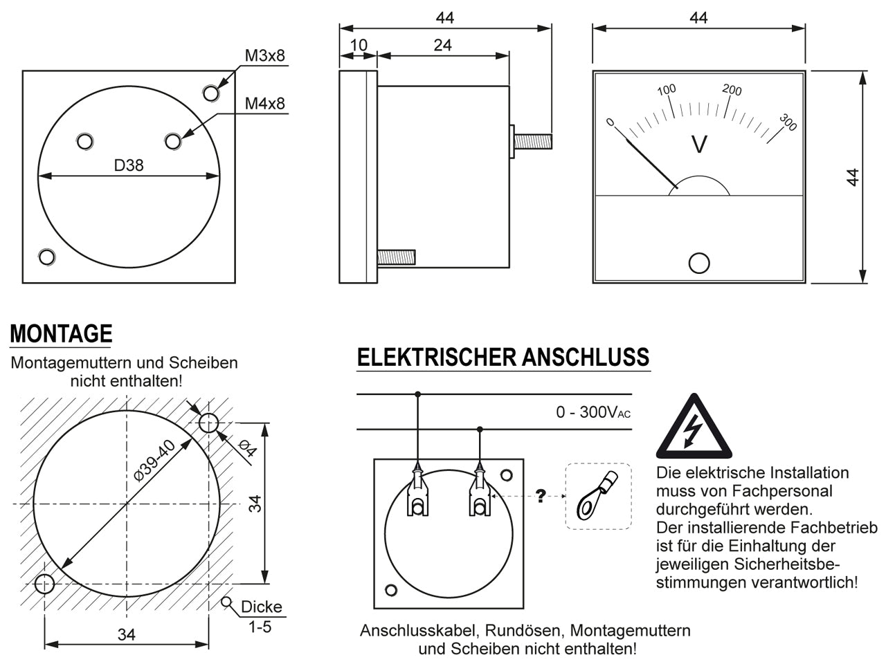 - Meßbereich 0 - 300V