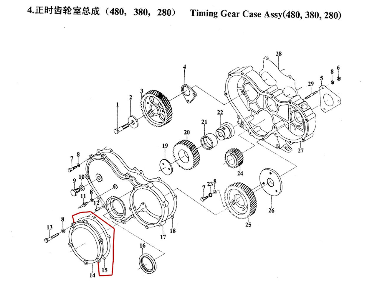 Yangdong Dieselmotor Y480/YD480/TD480 - Dichtung für Frontcover Timing Gear